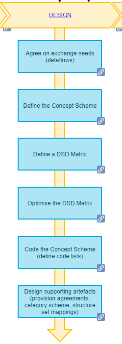 The steps described in the DESIGN phase are those described in the guidelines "Modelling a Statistical Domain for Data Exchange in SDMX".