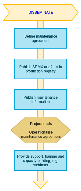 This phase manages the release of the final products to the outside world. It includes all activities associated with assembling and releasing a range of static and dynamic products via a range of channels. These activities support users to access and use the outputs released.
